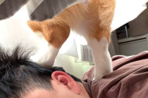 寝る場所問わず? コーギー犬が選んだのはロングセラー「蒸しパン」の上だった…「下僕の監視です」「狭いけどまぁいいか」