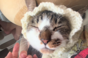 「気に入って脱がないの可愛すぎる」手編みヘッドドレスで『フリフリお嬢』にしてみた💖💖
