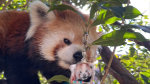 「リンゴ、リンゴ!」と身を乗り出す食いしん坊 ヒノトントンZOOの〝美白〟レッサーパンダ「ソラ」の魅力に迫る